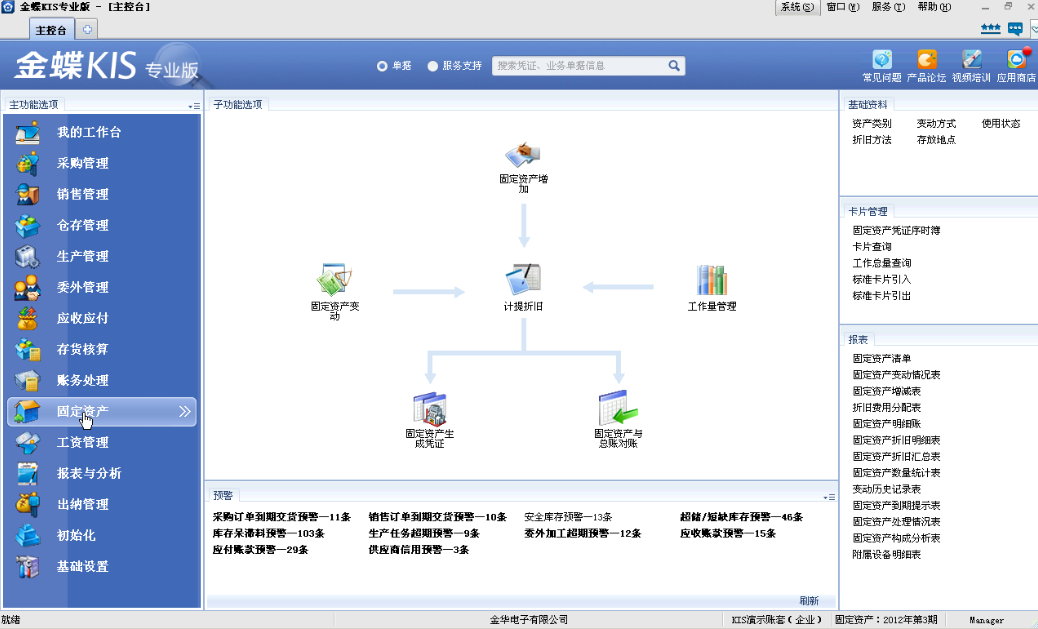 支持固定资产新增、变动、清理等管理;提供8种折旧方式,自动计提折旧,自动完成费用分配;提供丰富的固定资产报表。